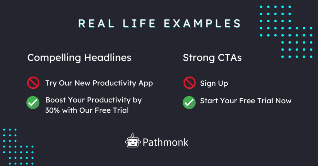 Original: “Try Our New Productivity App” Improved: “Boost Your Productivity by 30% with Our Free Trial”