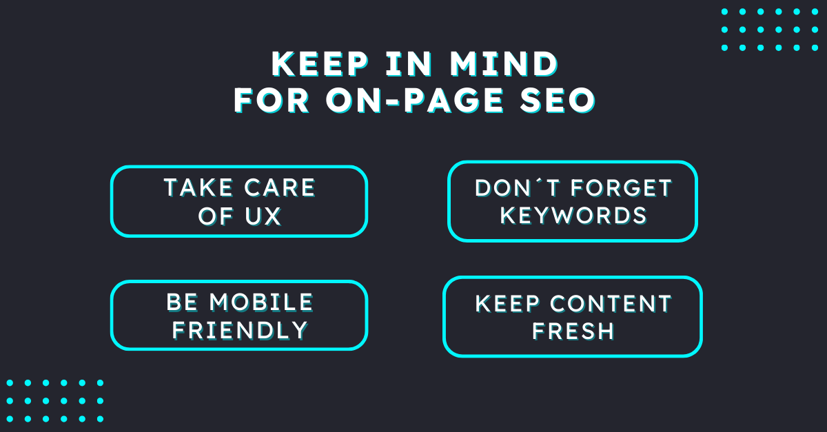 To maximize the effectiveness of your on-page SEO efforts, we advise you to follow the next best practices: